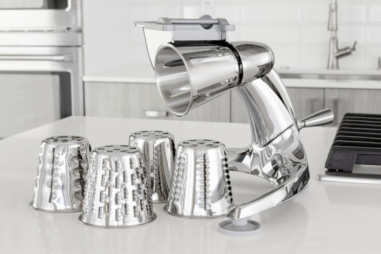 Transform your meal prep with the Saladmaster Food Processor, the ultimate kitchen tool for precision slicing, shredding, and grating. Crafted with premium materials and equipped with a unique, high-performance cutting mechanism, this manual food processor lets you effortlessly handle everything from vegetables and fruits to cheese and nuts. It features five interchangeable cutting cones, allowing you to customize textures for salads, sides, and garnishes. The heavily chrome-plated base and hopper are guaranteed not to chip, peel, or pit, giving you a lifetime of superb service. Its durable stainless steel construction ensures long-lasting use, while the secure suction base provides stability during operation. Designed for easy cleaning and compact storage, it’s perfect for daily use in kitchens of any size.